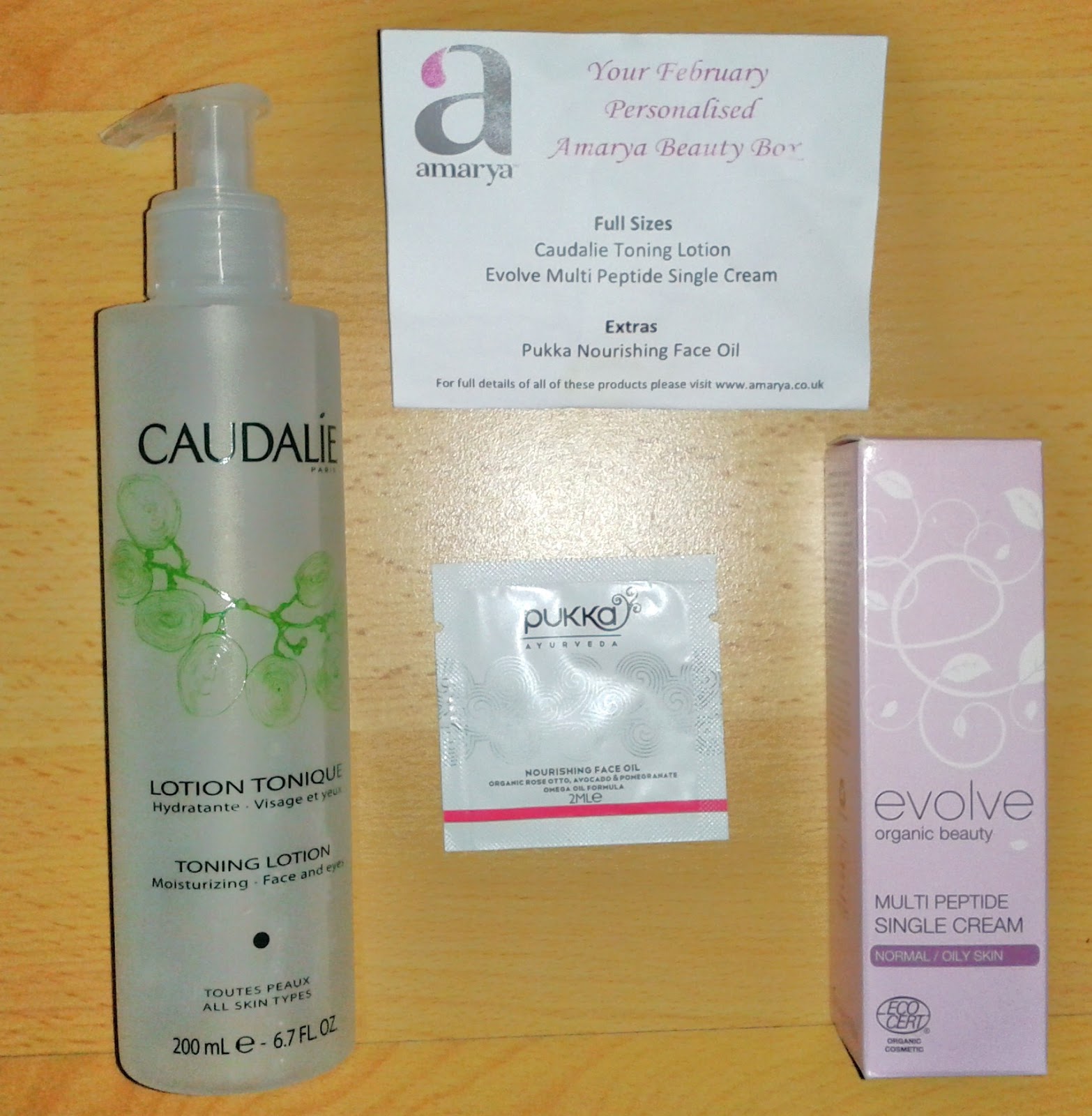Anyway on to this box. After lasts months good selection I eagerly awaited this month's box so I was a bit disappointed. There isn't anything wrong with the contents it's just not very exciting and there were only two products this month. The Caudalie toner isn't something I would have bought, I have too many toners at the moment and I feel this doesn't offer me anything different than a standard toner. Also the idiot who packed my box left the cap open so I received a half empty bottle plus a very wet box which was annoying. Although I was sent a selection of Evolve Samples to try a while ago I totally forgot about them, so this will be the first time I've tried the brand. Although it isn't something I would have picked out I'm always happy to try out a new moisturiser. The extra sample sachet is a nice extra but as I've said before you can't really tell much from a sachet so I'm not really that keen on them.